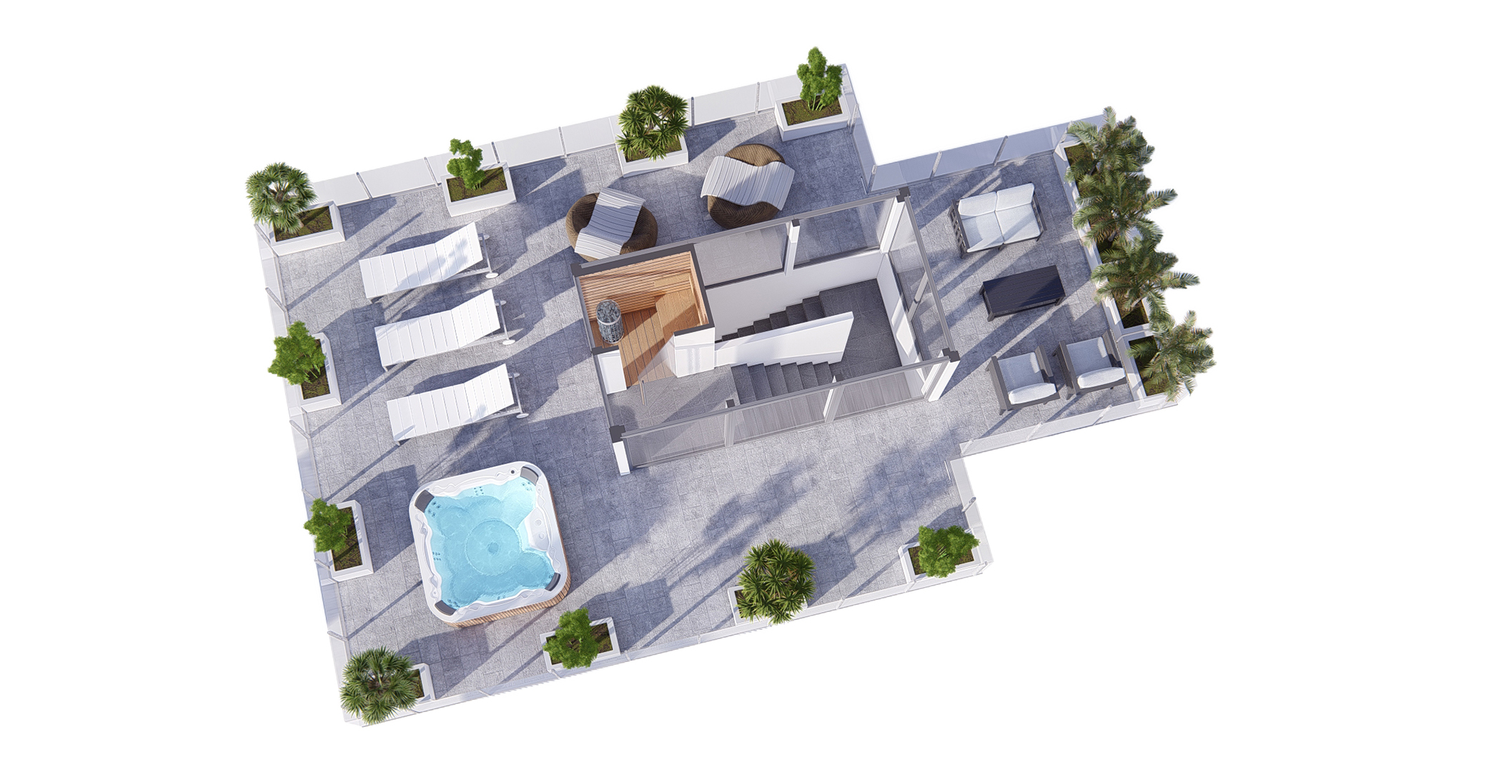 Az otthonok elrendezésében, alaprajzaiban is a tervező minden apró részletre figyelt, így megvédve a lakásokat elfoglaló családok intim szféráját, de közben és nem utolsó sorban a luxus kivitelhez tartozó műszaki és esztétikai tartalmakat is.